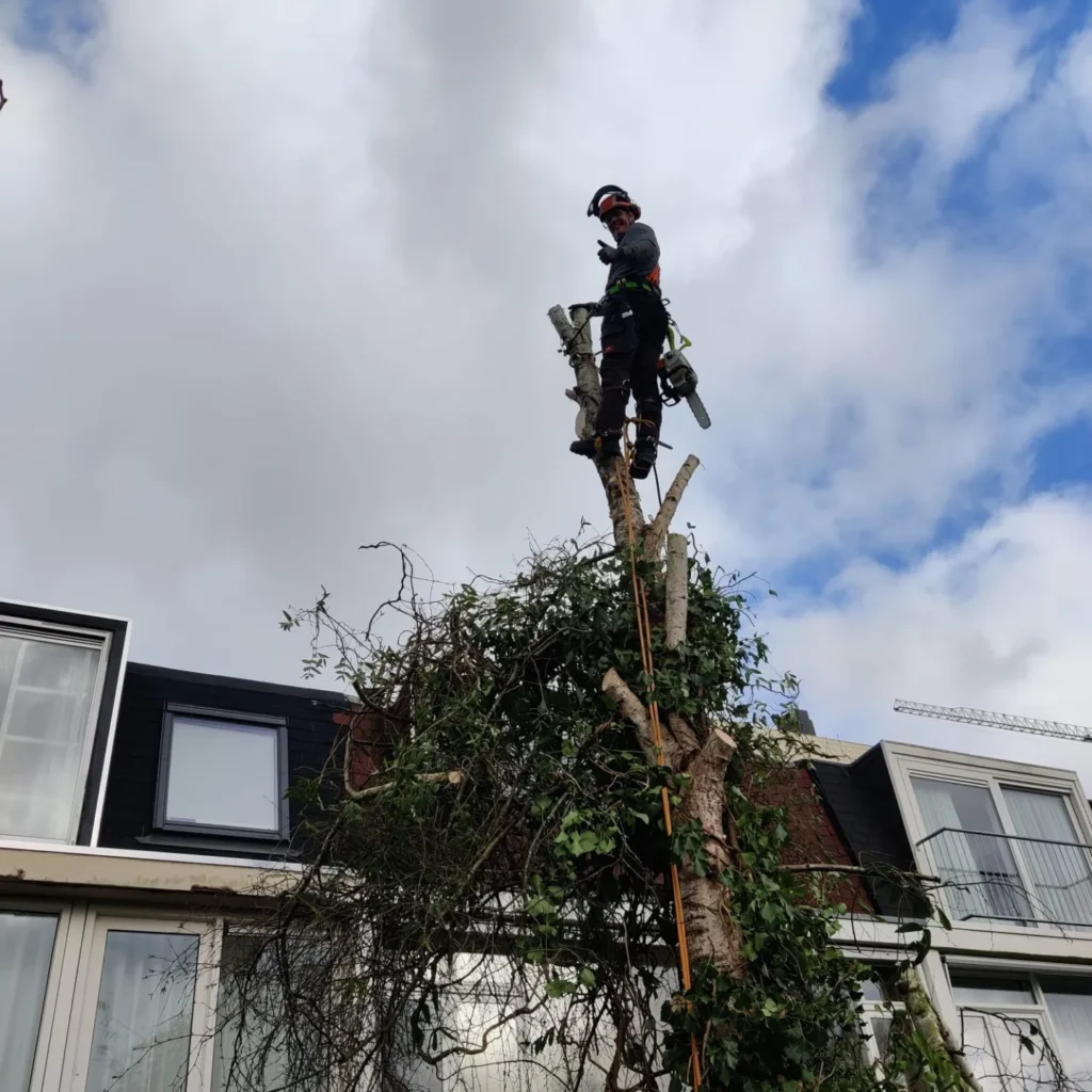 Ik onderscheid mij door het gebruik van klim- en afhangtechnieken waardoor in complexe situaties toch gemakkelijk een boom geveld kan worden.